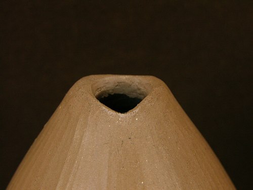 All of our xun are now available as an 11-hole instruments, with a subhole added at the RH middle finger position. This 11-hole configuration provides fingerings for all accidentals and thus no half-covering of a tonehole is required (as with traditional xun). Of course, let us know if you'd prefer a 10-hole instrument instead.